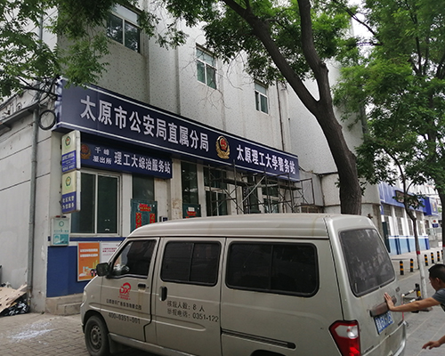 【德軒案例】太原理工大學(xué)警務(wù)站門頭制作