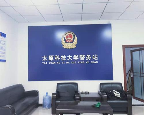 【德軒案例】科技大學(xué)警務(wù)站安裝背景墻 亞克力板